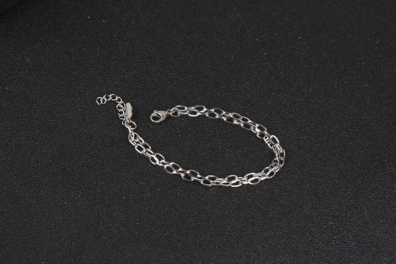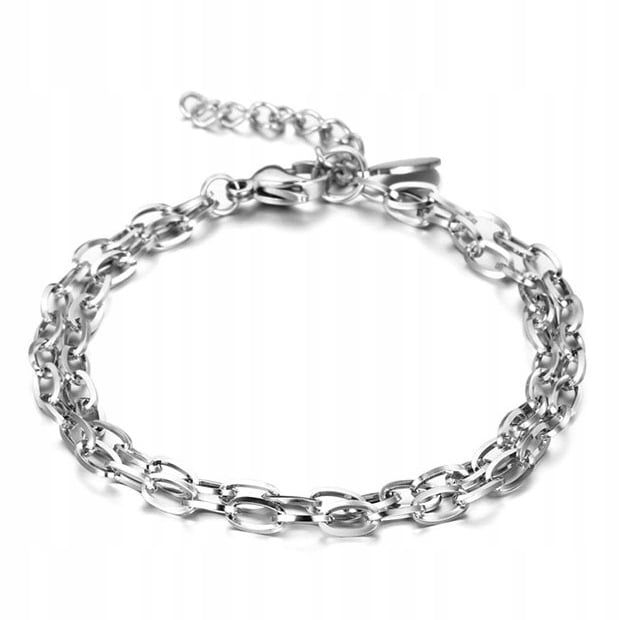 Bransoletka ma klasyczny, podwójny łańcuchowy wzór, który jest zarówno elegancki, jak i nowoczesny. Łańcuch składa się z precyzyjnie wykonanych, owalnych ogniw, które tworzą wyrazisty, ale nie przesadny wygląd. Karabińczyk zapewnia pewne i bezpieczne zapięcie, a regulowana długość od 20 cm do 23 cm pozwala na idealne dopasowanie do nadgarstka.