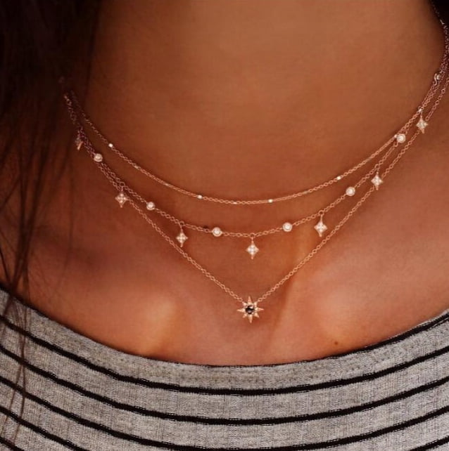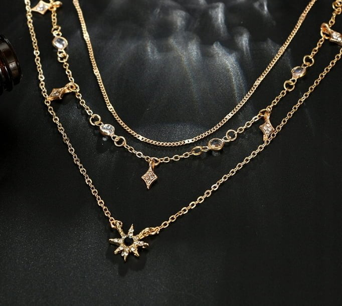 Naszyjnik Łańcuszek Złoty 3w1 Gwiazda Cyrkonie
